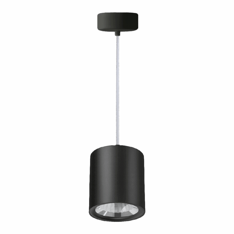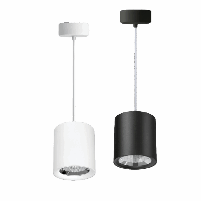 Thân đèn nhôm sơn tĩnh điện, tông đen – trắng sang trọng, cho phép lắp đặt linh hoạt trong mọi phong cách thiết kế – từ tối giản đến đương đại.