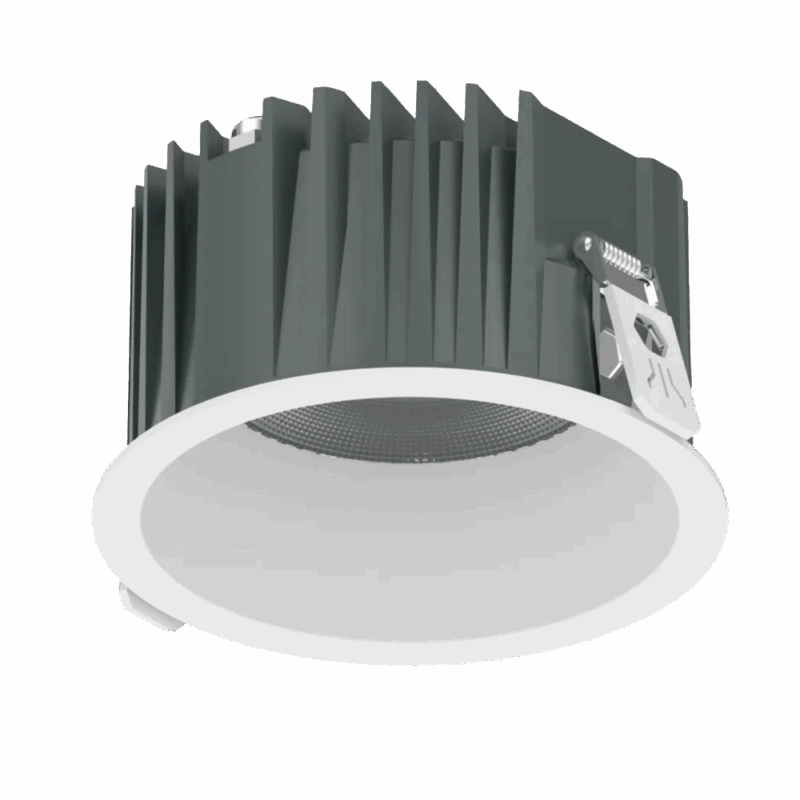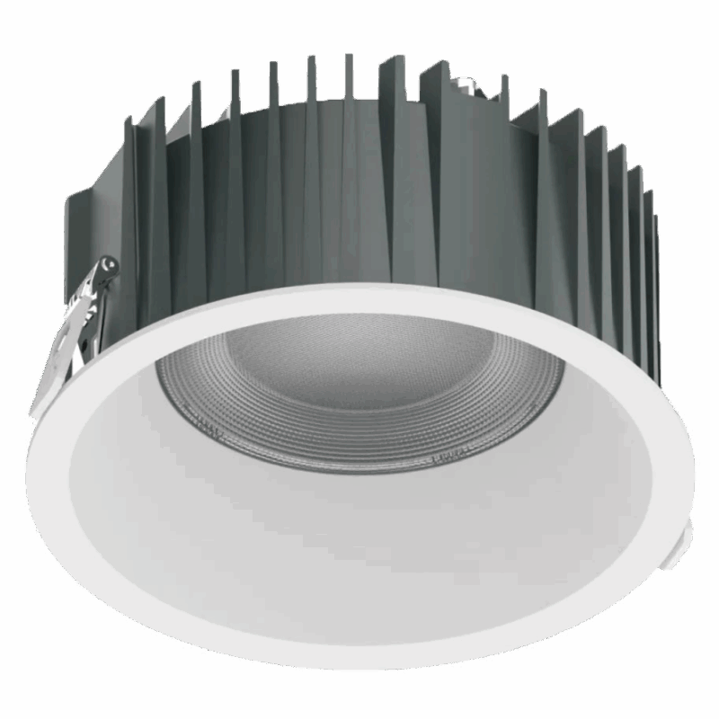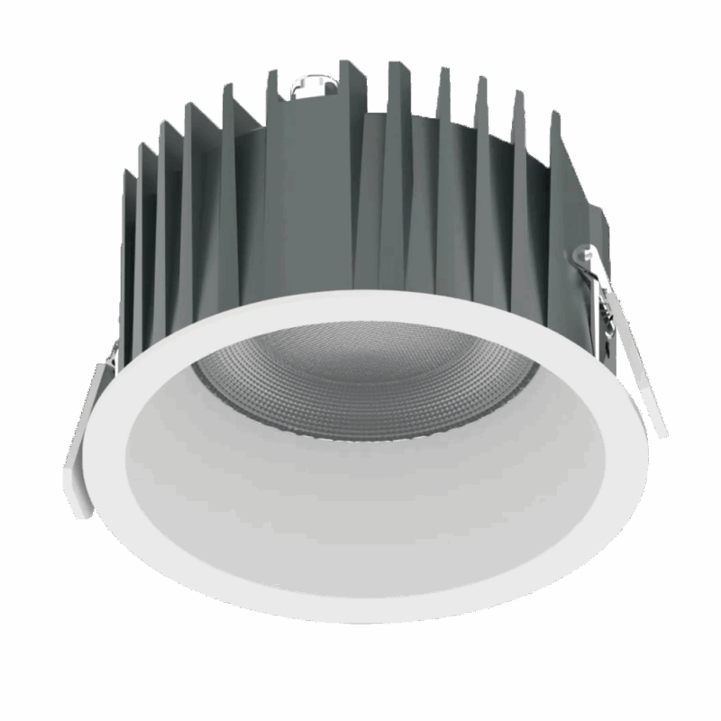 Thiết kế thân nhôm đúc tản nhiệt sâu, viền trắng tinh gọn cùng chuẩn bảo vệ IP40, phù hợp cho các khu vực trần khô trong nhà như sảnh, hành lang, phòng họp, cửa hàng, showroom và trung tâm thương mại.