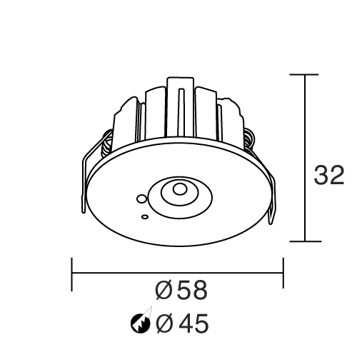 Thân đèn âm trần nhỏ gọn, vật liệu cách điện – chống cháy, đạt tiêu chuẩn CE / RoHS / IP20, phù hợp lắp đặt cho hành lang, cầu thang, lối thoát hiểm hoặc khu vực kỹ thuật.