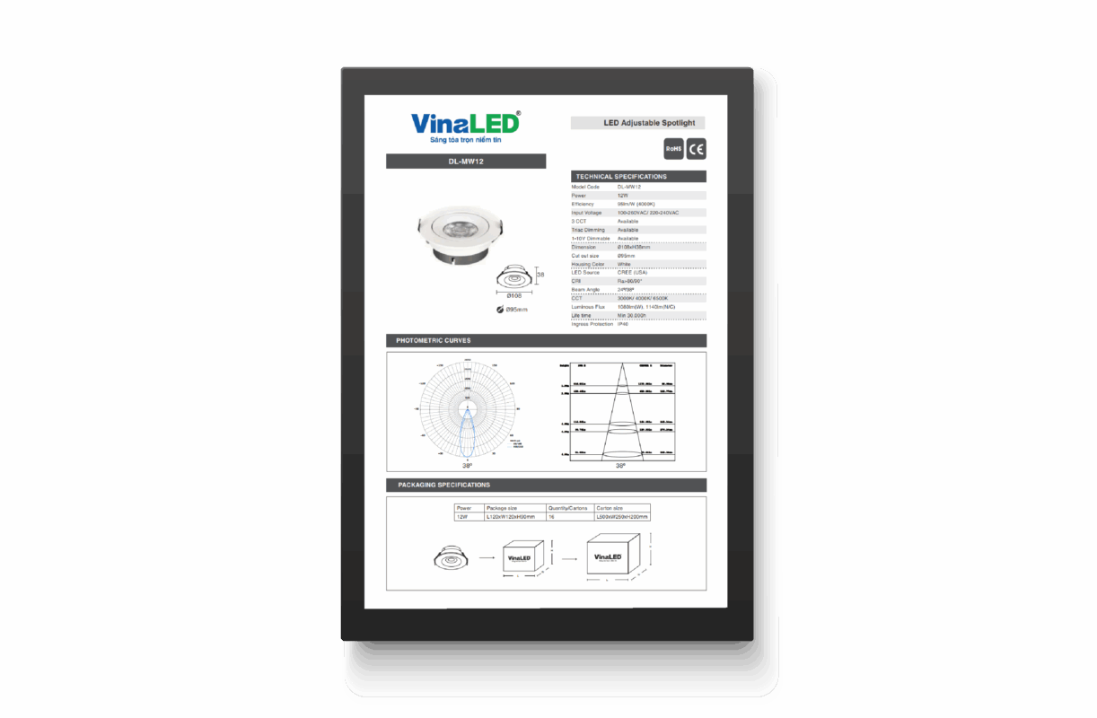 VINALED chuyên cung cấp đèn LED kỹ thuật cao cho công trình dân dụng, công nghiệp và đô thị. Sản phẩm đáp ứng tiêu chuẩn ISO 9001:2015, TCVN, QCVN và được trang bị đầy đủ file kỹ thuật, IES, Specifications… phục vụ thiết kế & triển khai dự án.